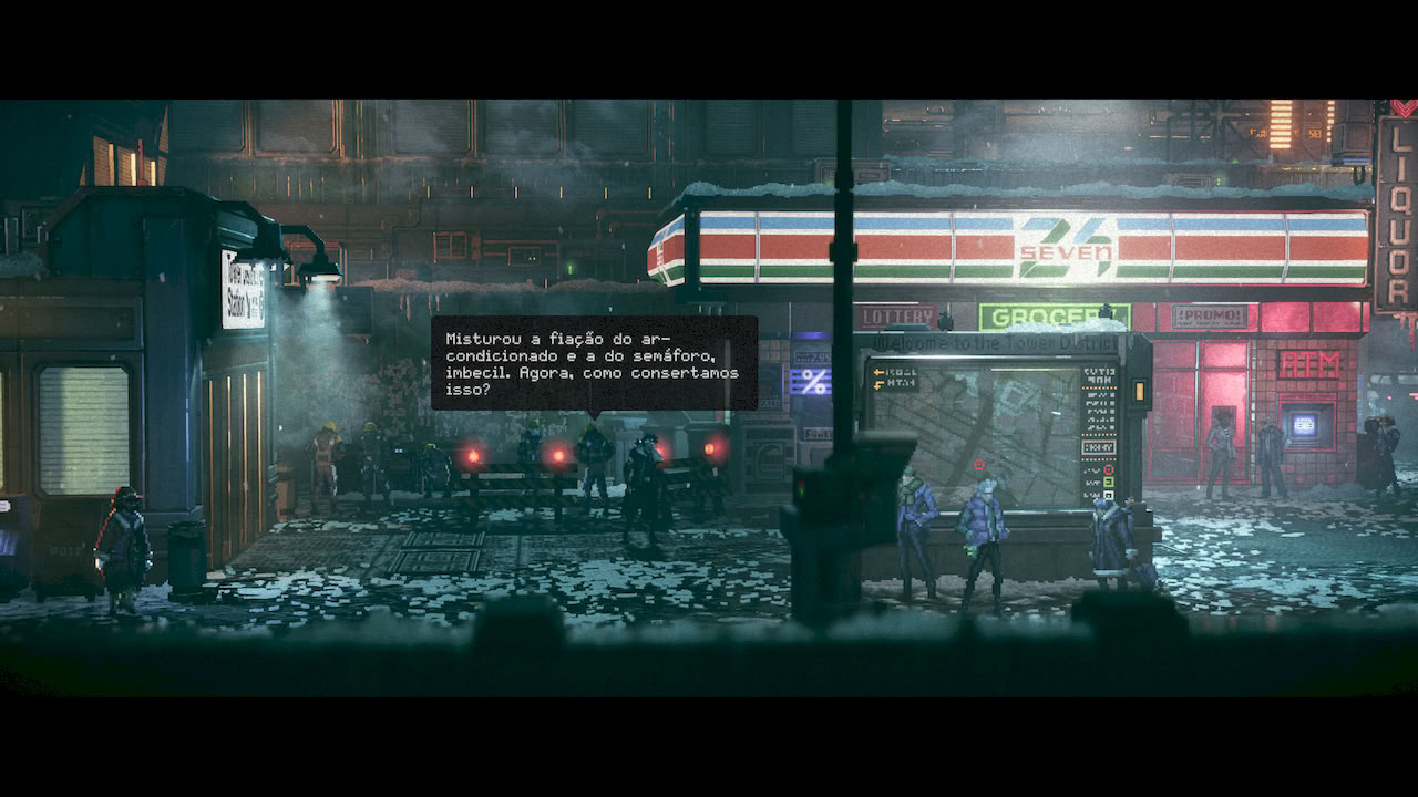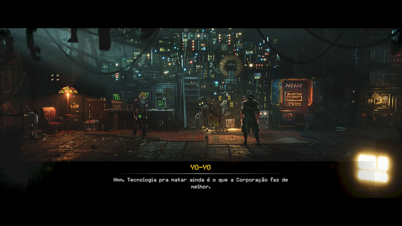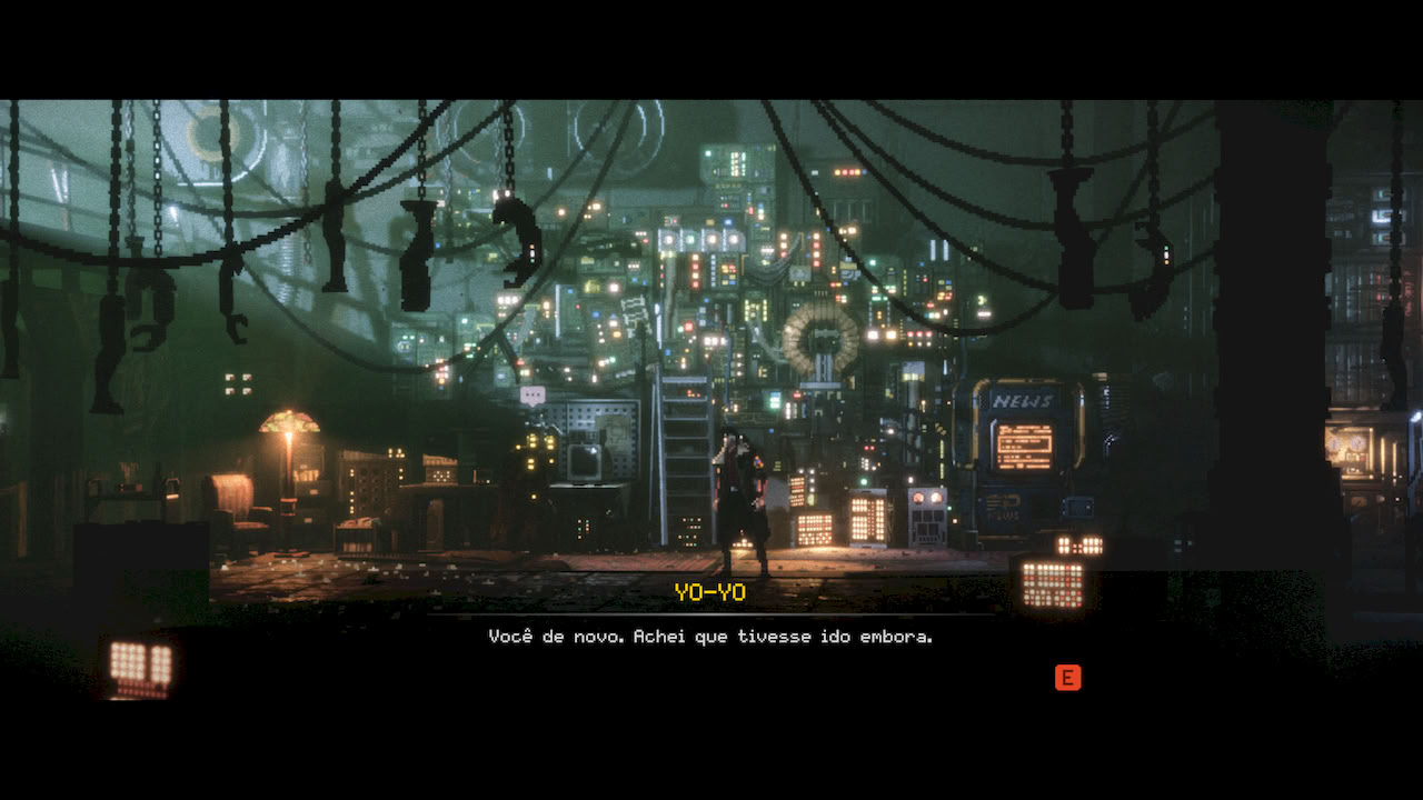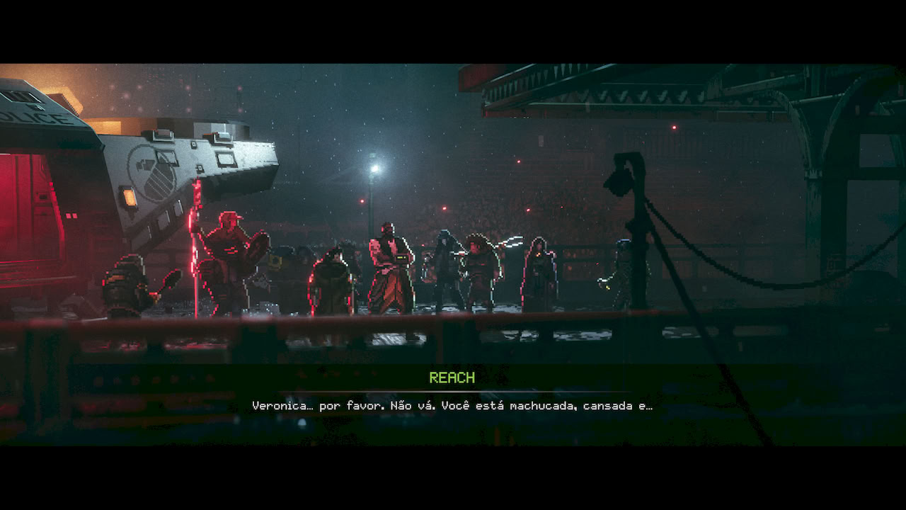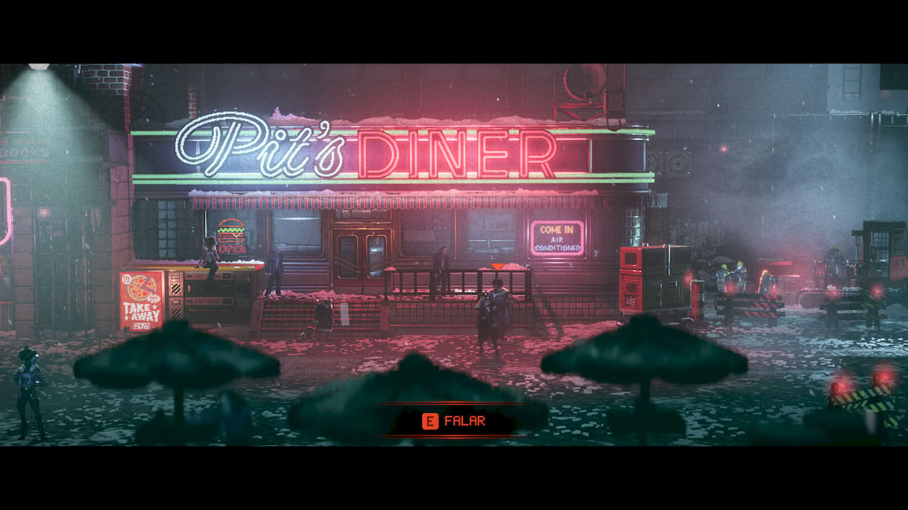 Replaced me levou a um mundo distopico, retrofuturista, onde se passa na decada de 80, mas com muito mais tecnologia e avanço na ciencia do que tinhamos nos nossos anos 80. A imersão foi tão grande que logo no começo você se sentia dentro do mundo imerso aquela atmosfera escura, triste e ao mesmo tempo cheia de luzes, neon e tudo que um tema de cyberpunk pode te trazer.