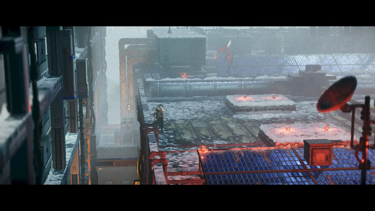 Depois de ver o trailer e instalar o jogo, parei todos os outros que estavam no backlog e esse furou a fila completamente. Comecei a jogar e me encontrei imerso dentro do jogo, por sua aparencia apesar de pixelart, tambem inclui efeitos maravilhosos de parallax inserindo 3d em toda a ambientação, porém um 3d polido, com cara de pixelart tambem, tanto que se você tirar um print, as coisas se encaixam tao perfeitamente que você acha que tudo é muito bem detalhado e bonito que cria um ambiente lindo, cheio de nostalgia de certa forma, mas como uma forma única de arte que o pixelart te traz.